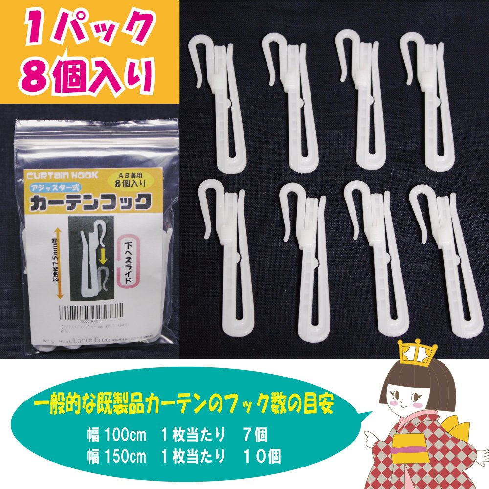 Window beautiful curtain hook made in Japan UV adjuster type 75 mm 8 pieces (AB dual use)