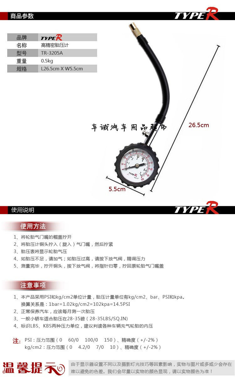Brand: TYPER / Tepper children Model: TR-3205A Display: Analog tire pressure table type: pressure monitoring system appearance: Other Material: Metal air gauge precision type: High Additional features: deflation