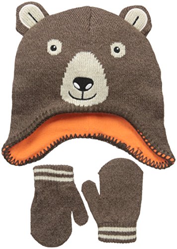 Product DescriptionKnit bear Peruvian set with 3D ears and embroidered face. Matching mitten.0
