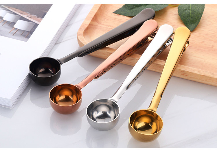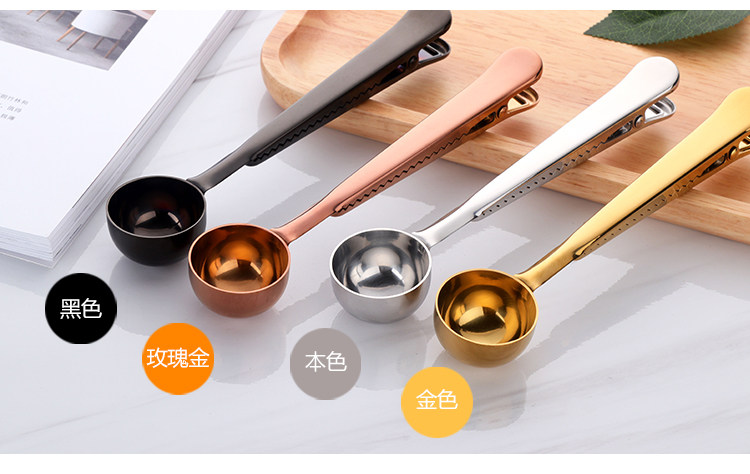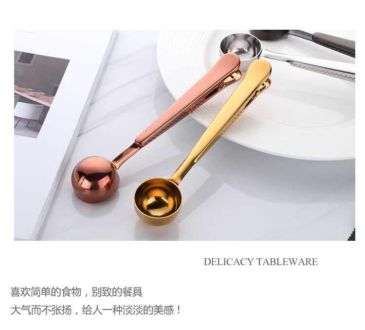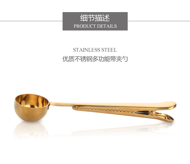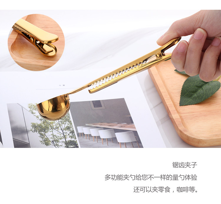 304不锈钢 创意镀钛两用一体夹勺 咖啡奶粉食品包装密封夹子茶勺