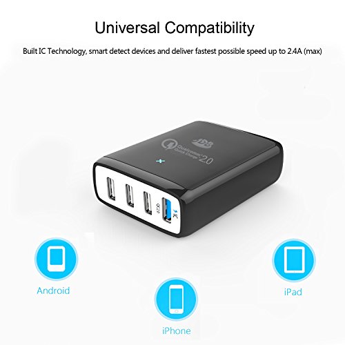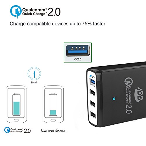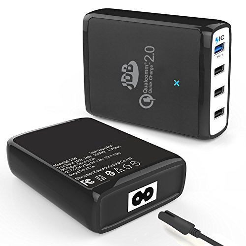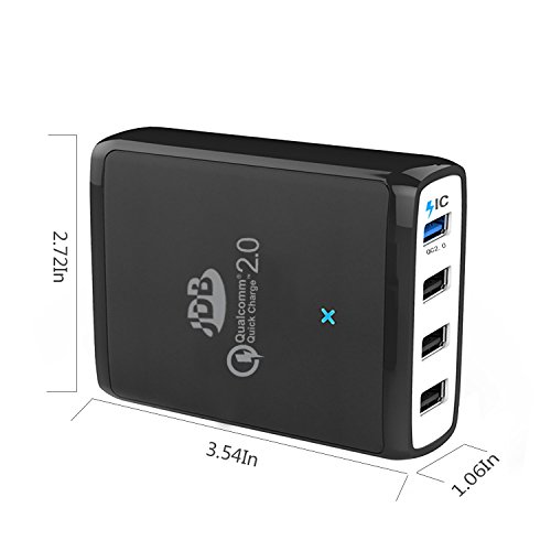 -. Binding : Electronics -. Brand : JDB -. Color : Black -. EAN : 0712243598021 -. Feature : Quick Charge 2.0: One of 4 ports USB Wall Charger equipped with Qualcomm QC 2.0 Tech, Charges compatible devices up to 75% faster. / Universal Charging: The Charger can smart detect the device and deliver the fastest speed for non-Quick Charge devices, max up to 2.4A one port. / Multi Protection: The USB Charging Hub can charge 4 smartphones or tablets with over-current, overcharging and overheating protection for safe and fast charging. / Compatibilty: Samsung Galaxy S7 / S6 Edge, Note 5/4, Nexus 6, Sony Xperia Z4, Motorola Droid Turbo, Moto X 2014, HTC One M9,LG G4/ V10, iPhone SE / 6S Plus and more. / Package Included: JDB 4 Ports Quick Charge 2.0 Wall Charger, 5ft detachable power cord, and full 18-Month Warranty. -. Label : JDB -. Manufacturer : JDB -. Model : 5829327 -. MPN : 5829327 -. PackageQuantity : 1 -. PartNumber : 5829327 -. ProductGroup : Wireless -. ProductTypeName : PHONE_ACCESSORY -. Publisher : JDB -. Studio : JDB -. Title : Quick Charge 2.0, JDB 4 Port Wall Charger Multi USB Charger for Galaxy S7/S6/Edge/Plus, Note 5/4, LG G4 / V10, Droid Turbo, Nexus 6, iPhone, iPad and More. -. UPC : 712243598021