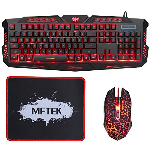 -. Title : Gaming keyboard and Mouse Combo MFTEK LED Backlit Wired Keyboard and Mouse Set with Mouse Pad 3Color Adjustable for Gamer Office Work