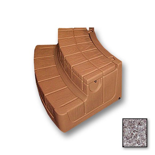 Studio : Byron Originals Publisher : Byron Originals Product Description Gulf Gray Concept 2 Embrace Step-n-Stow: is curved to accomodate round spas and does offer padlocking to secure contents. Optional spa rail (shown).The circular Embrace Concept 2 diplaying it's attractive simulated woodgrain finish that not only looks great, but it actually helps shed water and doesn't get slick when wet like common wooden steps. Step-n-Stow These spa steps are rotomoulded UV stabilized high-density polyethylene for maximum durability, stylish appearance and zero maintainance. Proper lid sealing and large slip-free simulated wood step are quality features only found in Step'nStow. 0