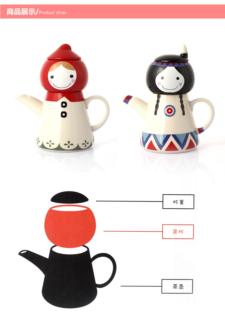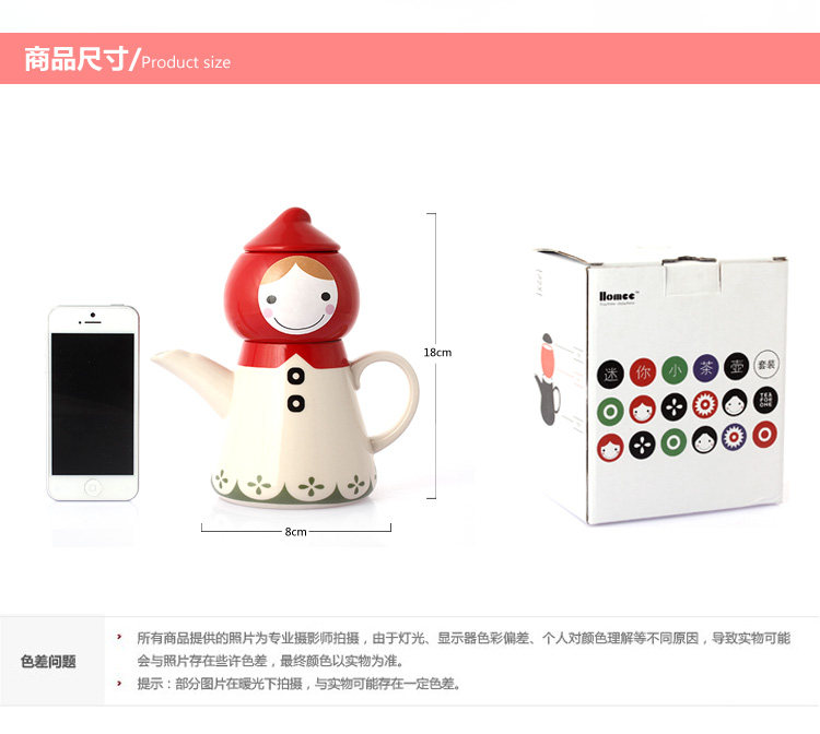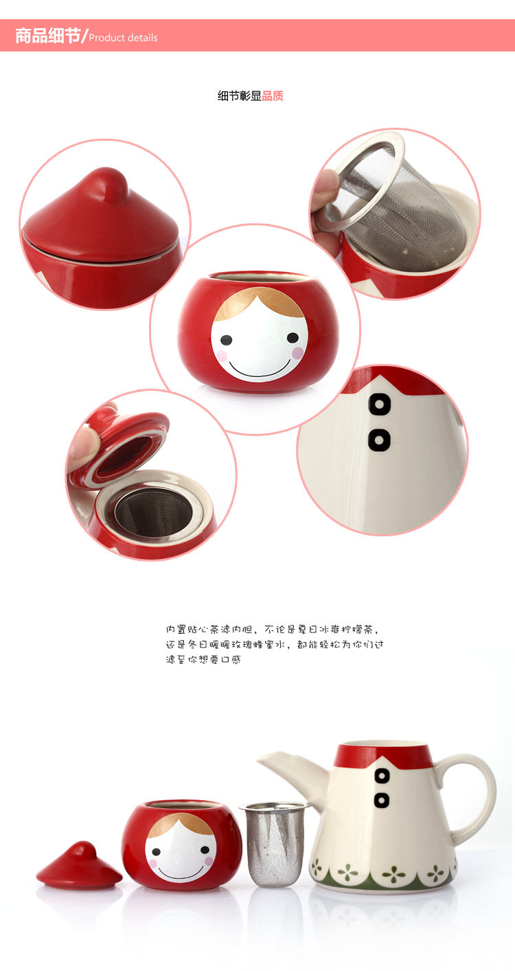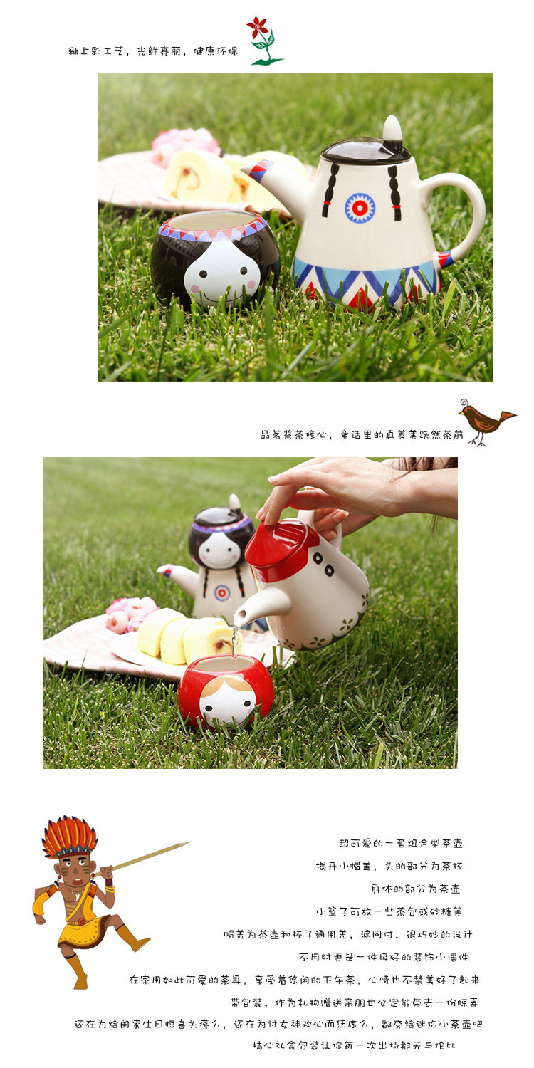 迷你小茶壶 可爱卡通陶瓷茶水壶 茶杯茶具迷你泡茶陶瓷壶四件套装