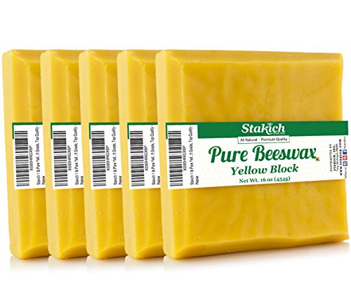 Stakich Pure Yellow BEESWAX Block - 100% Natural, Craft Grade, Premium Quality - (5 lb (in 1 lb blocks))