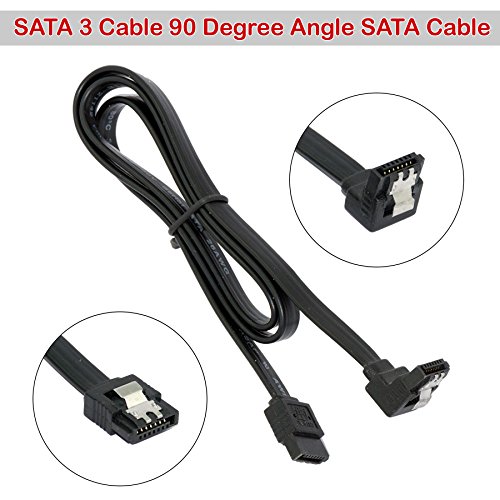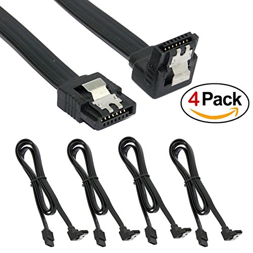 (4 Pack) SATA III (SATA 3) cable black (40cm) with Locking Latch straight to 90 Degree Angle | compatible up to S-ATA/600 | Serial ATA | 1,5GBs/3GBs/6GBs (backward compatible)