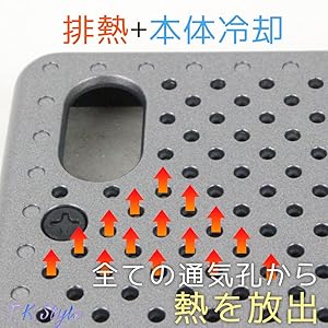 そこで、ケースに複数の小さい穴を空けることで熱の放出を促し、本体が熱くなるのを防ぐ効果があるヒートディスペイション機構を採用致しました。