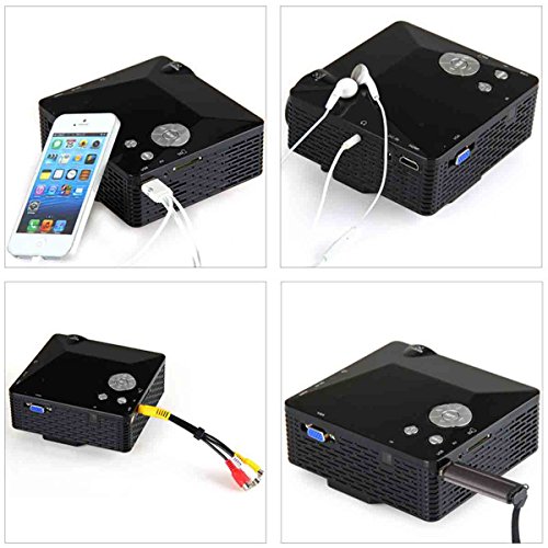 -. Feature : VIDEO PROJECTOR - Not recommended for PPT or business or teaching presentation, need to use in dark environment, ideal for home theater movies and video game use. Image size: 20-60 Inches, 1920*1080 high definition, Projection distance:1.25m-4m.You can adjust the size of image by changing the distance. We sest best Image Size:49-60 inches; best Projection Distance:1.5-3M. / ENTERTAINMENT - Video Projector is your P.R.Ivate home entertainment, relaxing your eyes from TV, Smartphone and PC, saving your money and time from cinema. Just stay at home, you could enjoy to watch movie at home + listen surround sound on couch + play video games on the huge screen. / PORTABLE DESIGN - Portable design, unit size: 9.7 x 7.3 x 4.3 inches, suitable for travel camping, outdoor party, also won't take up too much space in your room. Exchange with friends, happy movie after family dinner or BBQ Party, share sweet pictures to family. / MULTIFUNCTION INPUT -Built-in speakers, AV/VGA/USV/SD/HDMI/Micro USB interface, can connect with your Mac, iPhone, Galaxy, PC, laptop, DVD, U-Disk/Hard Disk Device, or TV set-top box(STB), 5V-Output USB port for smartphone, tablet power charging. / FAST DELIVERY & PERFECT SERVICE - Directly Delivery from United States, normally arrives in 2-7 working days; Full one-year warranty support provided directly by Lightinthebox, please feel free to contact us if you need assistance. LightInTheBox is A Registered Trademark in USA since 2013 with no Retailers on Amazon.