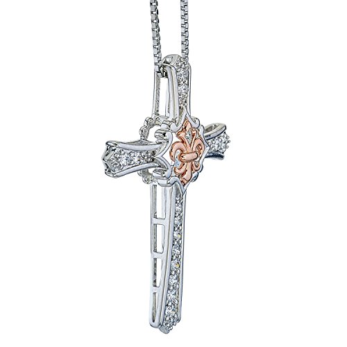 -. Feature : Diamond Cross Necklace in Sterling Silver/10K Gold / 0.25 carats Natural White Diamonds in H-I I-3 quality / Chain Type: box with SP.R.Ing Clasp / Pendant with chain / Rose-gold-and-sterling-silver