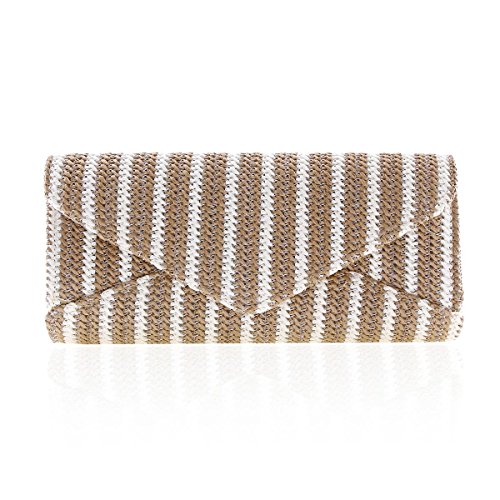 Damara Womens Weave Stripe Envelope Snap Wedding Clutch Bag