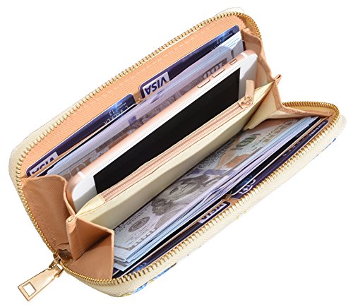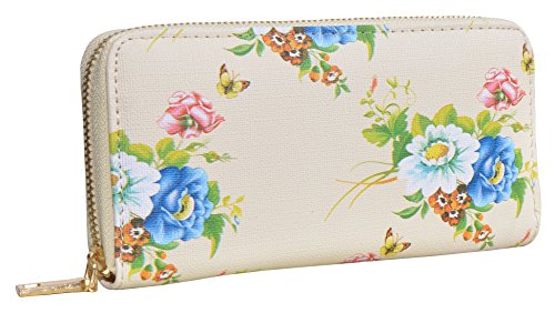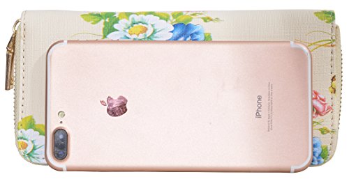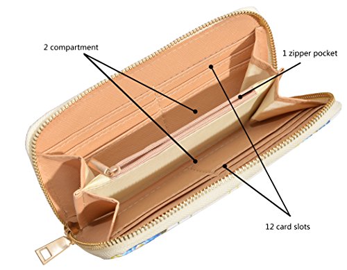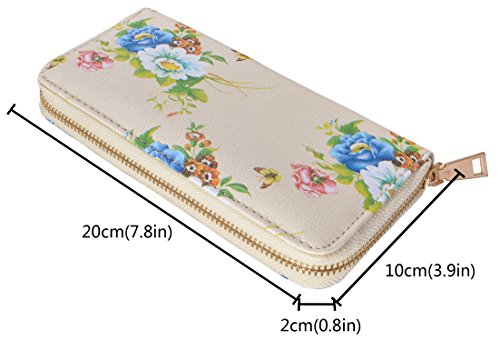 Outrip Womens PU Leather Wallet Clutch Cute Floral Zipper Card Holder Purse