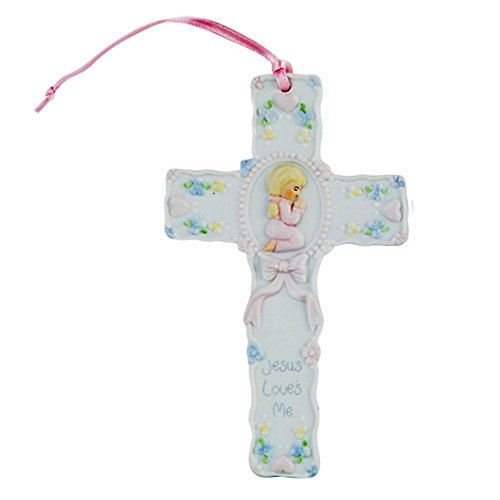 -. Title : Pacific Giftware Jesus Loves Me Prayer Little Girl Cross Statue Porcelain Bisque Finish Figurine, 5.5" W