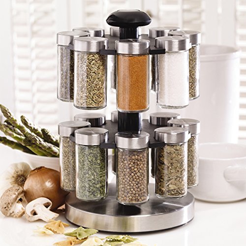 -. Brand : Kamenstein -. Color : Multi -. EAN : 0717261711445 -. Feature : ABS body with stainless accents, glass spice jars, plastic caps 16 spices, revolving rack 0.5 ounce of basil 0.5 ounce of bay leaves 1.98 ounces of celery salt 0.11 ounce of chives / 0.7 ounce of coriander 0.28 ounce of crushed mint 0.85 ounce of fennel 0.62 ounce of Herbes De Provence 0.6 ounce of Italian seasoning 0.18 ounce of marjoram / 0.5 ounce of oregano 0.18 ounce of parsley 0.54 ounce of pizza seasoning 0.7 ounce of rosemary 2.31 ounces of sea salt / Season salt / Spice rack measures 8 inches diameter x 10 inches high -. Label : K a m e n s t e i n -. Manufacturer : K a m e n s t e i n -. Model : 5108307 -. MPN : 5108307 -. PartNumber : 5108307 -. ProductGroup : Kitchen -. ProductTypeName : KITCHEN -. Publisher : K a m e n s t e i n -. Size : 8 inches diameter x 10 inches high -. Studio : K a m e n s t e i n -. Title : Kamenstein 'Lexington' 16-jar Revolving Stainless Steel Glass and Plastic Spice Rack -. UPC : 717261711445