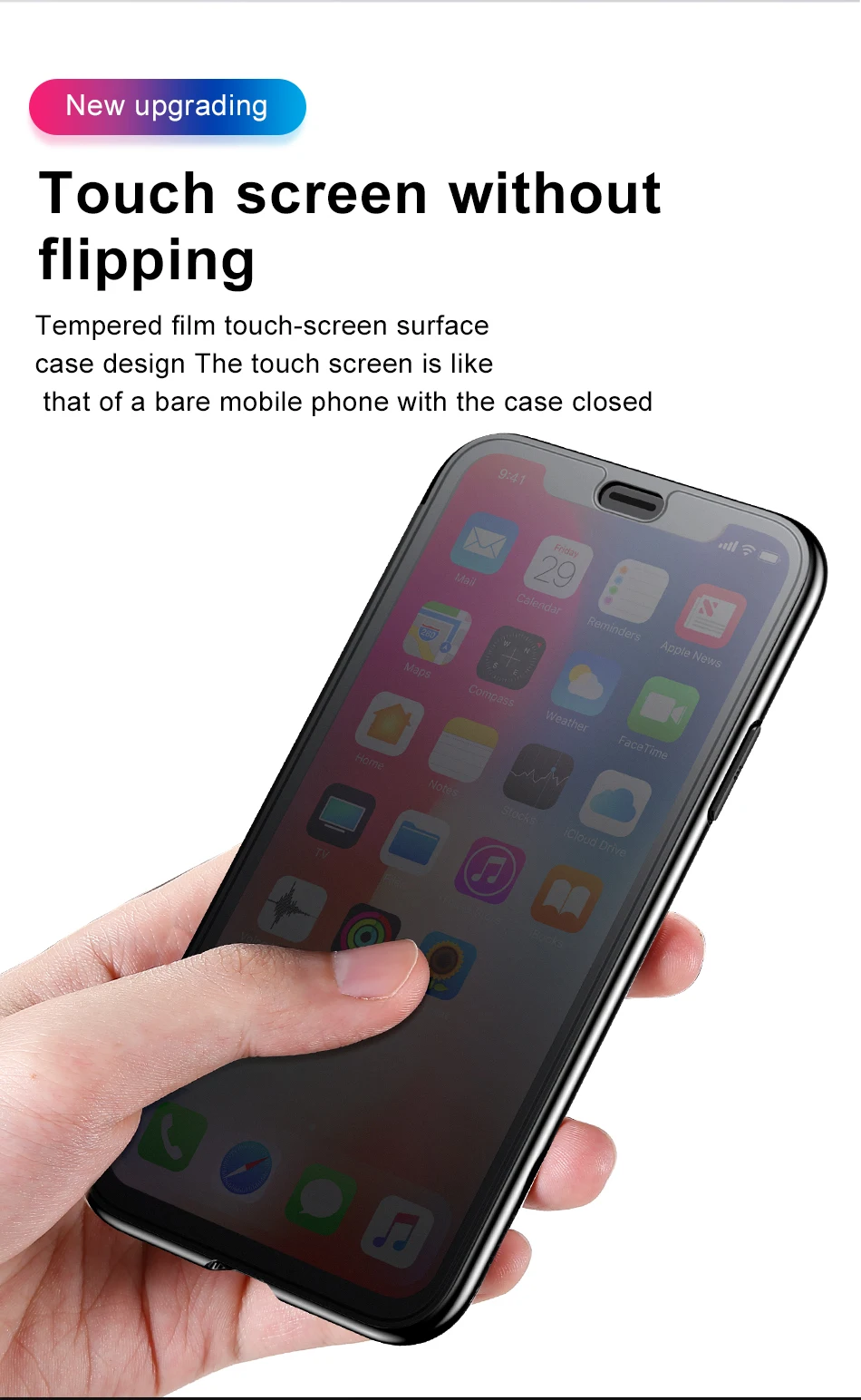 Material :Filp Tempered Glass + Soft Silicone