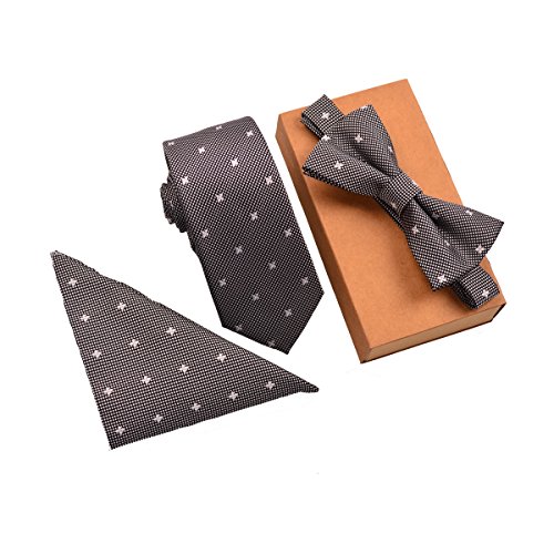 -. Feature : Material: 100% Polyester / Self-tie Necktie-Size: 57''(L)*2.36''(at widest part)/1.4''(at narrowest part) / Pre-tied Bow tie-size: 4.53''(L)*2.16''(W); Handkerchief size: 9.05''*9.05'' / Packaged with gift boxes / Please allow a slight color difference