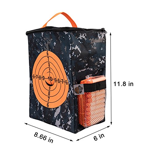 -. Feature : Target pouch bag for nerf guns toys: Made of durable canvas material.The pouch features front bullseye opening for targets practice,Each side has a grid, the kids can store largely darts or other toys. / Multi-function: The compact pouch characterized a handle to carry when you are on the move, also can be used for hanging the target bag turns it into a perfect shooting target. / Large storage : With size of 11.8 * 8.66 * 6.5inch, plenty of space to storage a big collection of nerf toys all in one targets pouch, perfect for storing smalll guns, darts and reload clips. / Target pouch perfect for nerf n-strike elite series, nerf n-strike elite mega series and nerf rival series. / Portable use:Hanging the target pouch in more areas, let your kids use both indoor and outdoor.