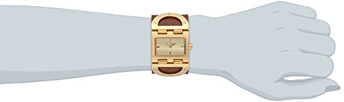 Rectangular-shaped alloy case with gold-toned bezel and champagne-colored face