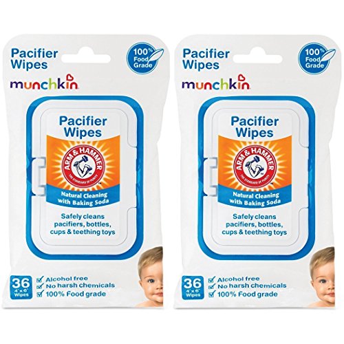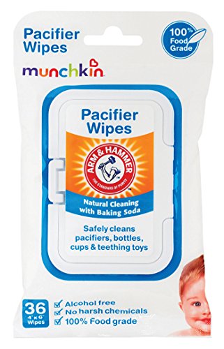 Not all cleaning products are created equal. In fact, many contain harsh chemicals that you wouldn't want anywhere near your precious little one - let alone the items that go in her mouth. Arm & HammerTM Pacifier Wipes can give you much-needed peace of mind, especially when you're out and about with baby. Made with 100% food-grade ingredients, this handy pack of 36 wipes cleans pacifiers, bottles, nipples, cups, utensils and teething toys using the safe and natural power of baking soda. These alcohol-free wipes measure 4" x 6" and are perfect for on-the-go use. Throw them into your diaper bag for those inevitable moments when you or baby will drop the last clean bottle or pacifier onto a dirty public floor.