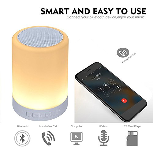 • Super Compact Design for travel: Just 3/5 pound with a compact design, this smart touch night light is super portable without sacrificing sound for you to carry it to anywhere you want. The 3W rate power and enhanced bass resonator offer class-leading performance for crystal clear and incredible sound quality of this portable wireless speaker.