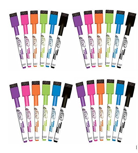 Magnetic, dry-erase markers contain magnets in the marker caps to ensure they will hold to any metallic surface. With magnetic markers, you've never lose a dry erase marker again. Low-odor markers deliver removable marks on any dry-erase surface so they are great for home, work or school. Simply wipe clean. Eraser tips on the caps make quick corrections without mess. The medium point tip allows detailed work. Markers are great for home, work or school.Feature