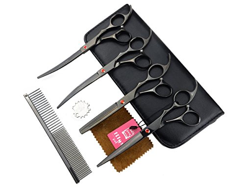 This Grooming Kit includes 8.0" Cutting scissor,7.0" Thinning scissor,8.0" Curved scissor point up,8.0" Curved scissor point down, Grooming Comb and scissor case that are constructed of stainless steel and come with finger-rest for extra control and comfort.