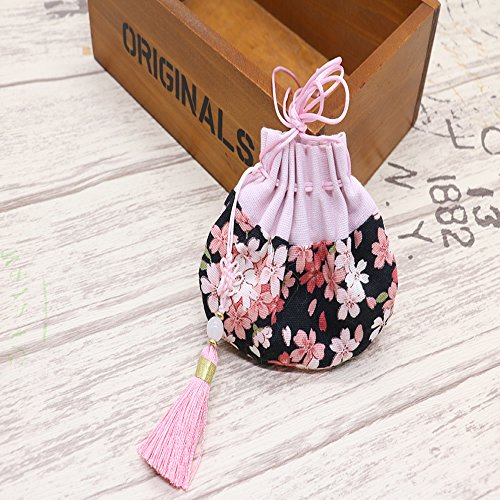 HUELE Chinese Plum Flowers Tassels Style Sachet Empty Bags With Drawstring Gauze Cotton