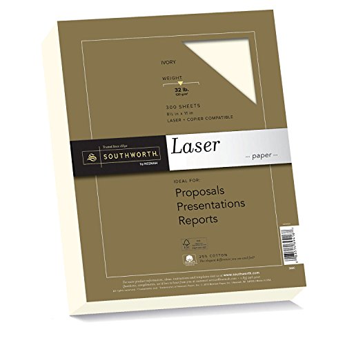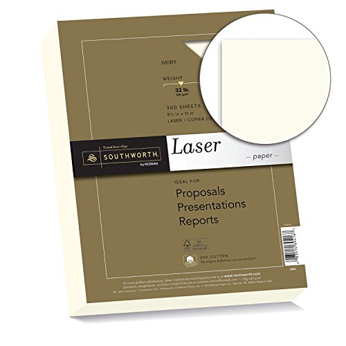 Southworth 25% Cotton Laser Paper, 8.5 x 11 Inches, 300 Sheets, Ivory (368C)