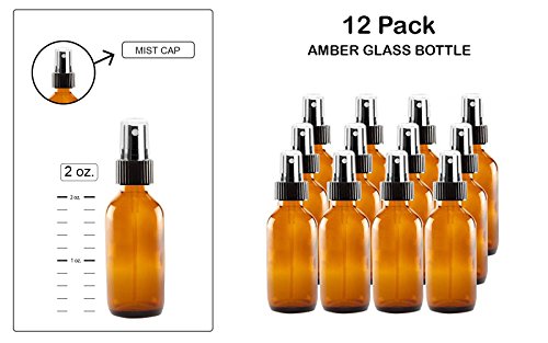 Mist spray / Glass Medicine Bottle, Amber Boston Brown Round Bottles 2OZ. 12 Pack - For Essential Oils, Scents, Travel, Perfume Kitchen, Bath, Cooking, Labs, Laundry, Cosmetic. - Re-Usable -By Katzco