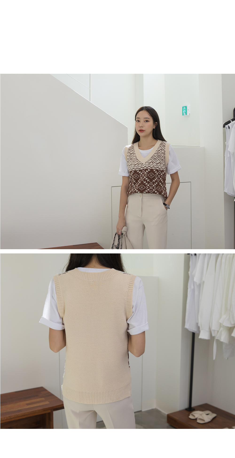 "트렌디한 패턴이 돋보이는 V넥니트베스트"