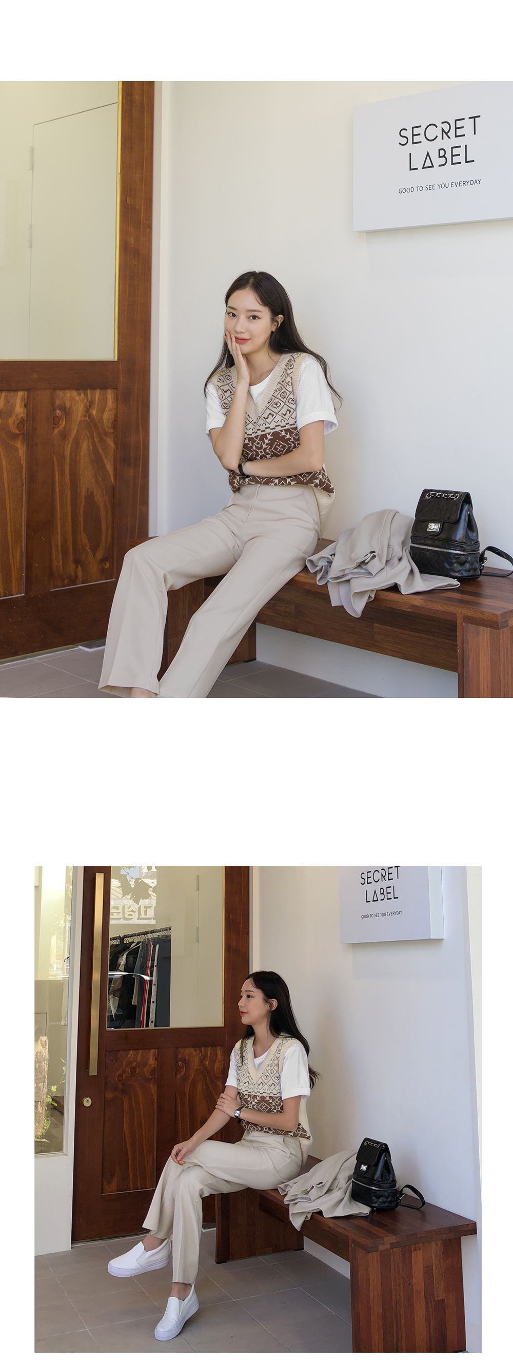 적당한 핏감과 언발 길이감이 편안한 니트소재 베스트에요~
