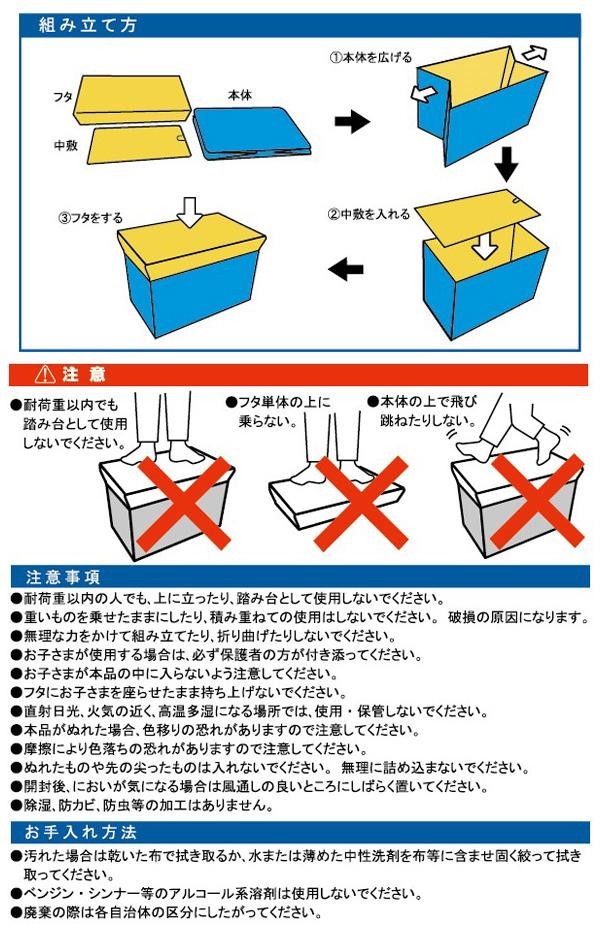 | たっぷり収納でき、ボックスの上に座ることもできるストレージボックスです。使わないときは折りたためるので場所を取りません。大事なおもちゃや宝物の収納に♪ |