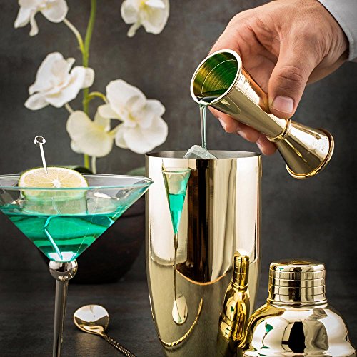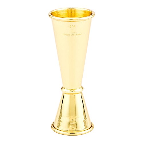 Perfect Cocktails with this Precision Jigger. Made from beautiful gold-plated 18/8 stainless steel, this Japanese-style two-sided jigger is perfect for professional and at-home mixologists focused on crafting exquisite concoctions. With .5-ounce (15-milliliters), .75-ounce (22-milliliters), and 1.0-ounce (30-milliliters) increment markings etched on one side, and 1.5-ounce (45-milliliters) and 2.0-ounce (60-milliliters) marked on the other side, this must-have bar tool allows for precise measurements needed for the perfect cocktail. Whether mixing a martini or mocktail, a pitcher of margaritas or Manhattans, this jigger will help you measure every last drop. Use at home or at your bar, at catering events or in restaurants - this bar accessory is ideal for all occasions and establishments. Not dishwasher safe. Restaurantware is the kingdom for all your cocktail needs! 0 |