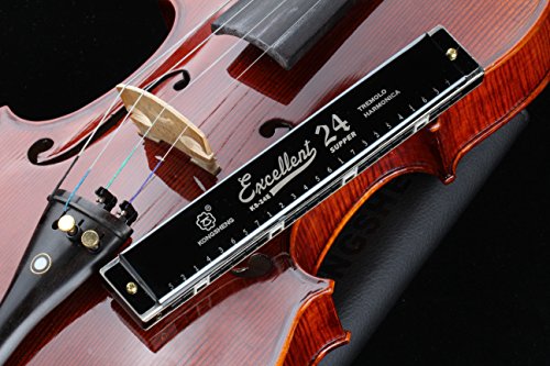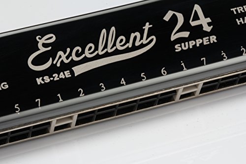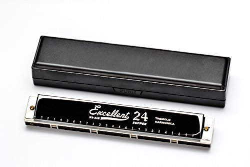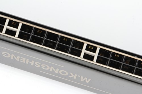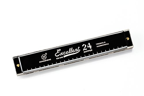 Product Description Introductions: 24 Holes Key: C Color: black Dimensions: (7x 1.1x 0.78)"" / (L x W x H) weight: 135g Material: black steel housing, electroplating plate, copper reed, resin comb The following are a few tips for taking care of your harmonica: - Do not drink sticky, heavy drinks before playing. - Rinse your mouth out well, wash your hands, or brush your teeth if necessary, before playing the harmonica. - Keep your harmonica in the box or in some other clean place if you are not playing. - Tap your harmonica out gently after playing, tapping out the excess saliva - holes down. - DO NOT LET OTHERS PLAY YOUR HARMONICA - unless it is someone you do not mind kissing - because you are definitely kissing your harmonica every time you play! - Be aware that "bending" notes - though it can sound great - may literally bend the reeds out of tune - do not force the reeds when you bend them, use finesse. - Keep your harmonica away from heat or direct sunshine. - DO NOT wash your harmonica with hot water, alcohol, or other chemical reagent. Package included: 1 x Harmonica 1 x Wipe Cloth 1 x Harmonica box