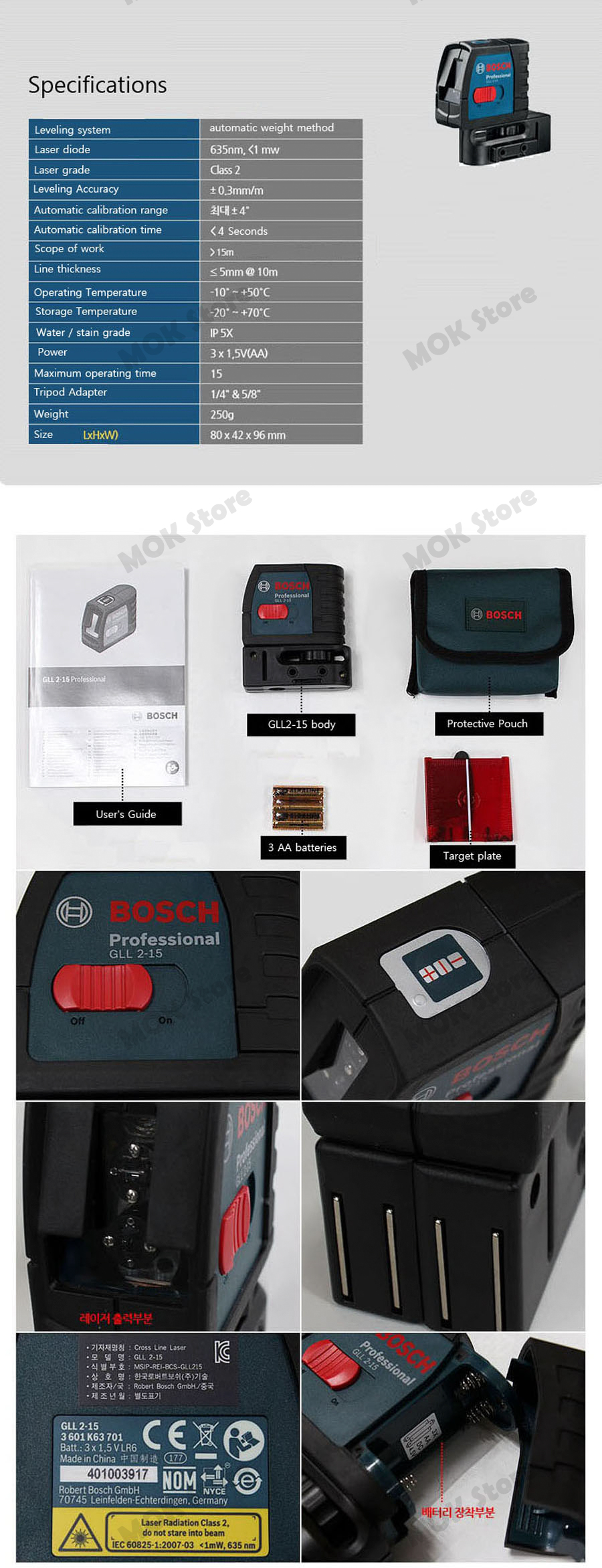- Accuracy : ±1/8 in at 33 ft (±3 mm at 10 m)