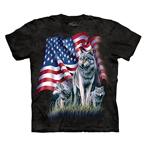 -. Binding : Apparel -. Brand : The Mountain -. Color : Blue -. Department : mens -. Feature : Exceptional artwork on a tee shirt / Comfortable and durable -. Genre : Novelty -. Label : The Mountain -. Manufacturer : The Mountain -. Model : 101002 -. MPN : MT1002-10-P -. NumberOfItems : 1 -. PackageQuantity : 1 -. PartNumber : MT1002-10-P -. ProductGroup : Apparel -. ProductTypeName : SHIRT -. Publisher : The Mountain -. Studio : The Mountain -. Title : The Mountain Mens Wolf Flag Short Sleeve T-Shirt