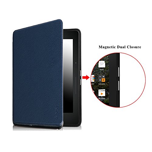 SmartShell Case for Kindle Voyage - Aibrou [The Thinnest and Lightest] Protective PU Leather Cover with Auto Sleep/Wake for Amazon Kindle Voyage (2014) (Deep Blue)