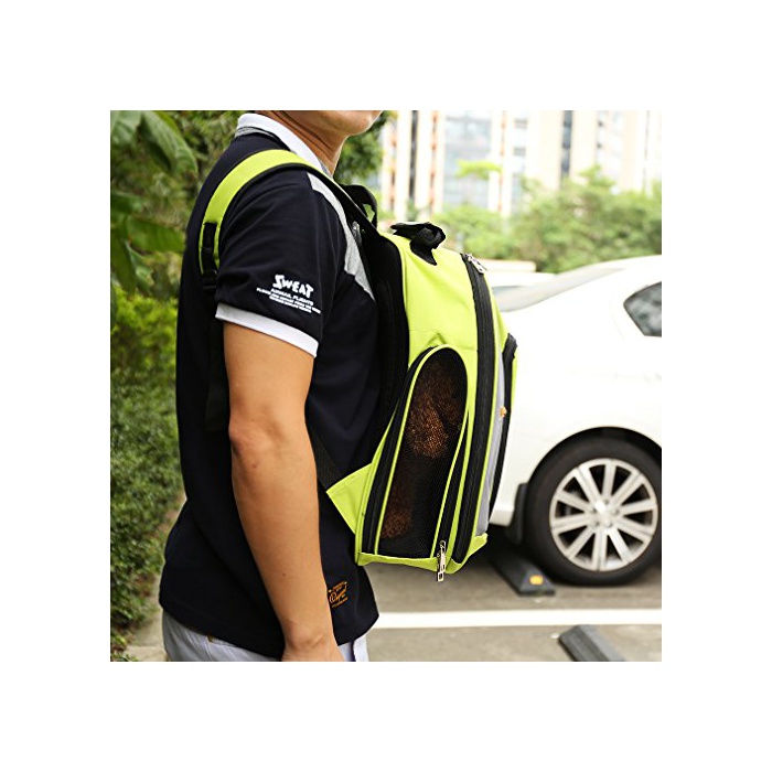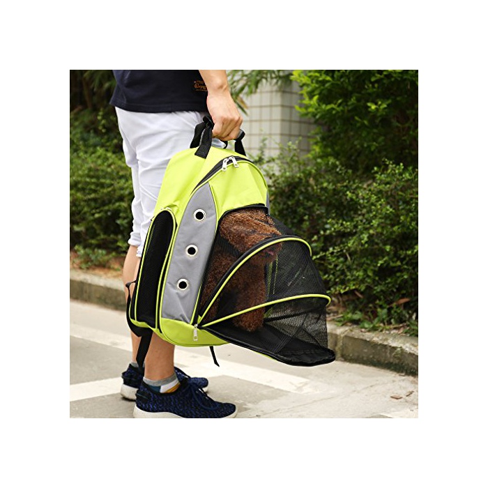 Airtop 애완동물 백 묘개 용팩 애완동물 캐리 외출 편리 확장 가능 환기성 발군 애완동물 활동 자유 백 팩 소형 개와 고양이용 튼튼한 재료(컬러 :그린)