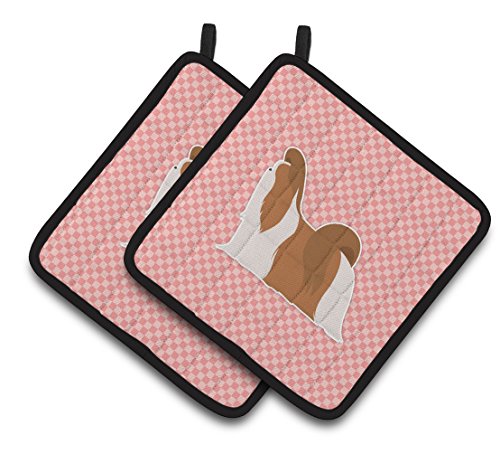Caroline's Treasures Shih Tzu Checkerboard Pink Pair of Pot Holders BB3646PTHD, 7.5HX7.5W, Multicolor