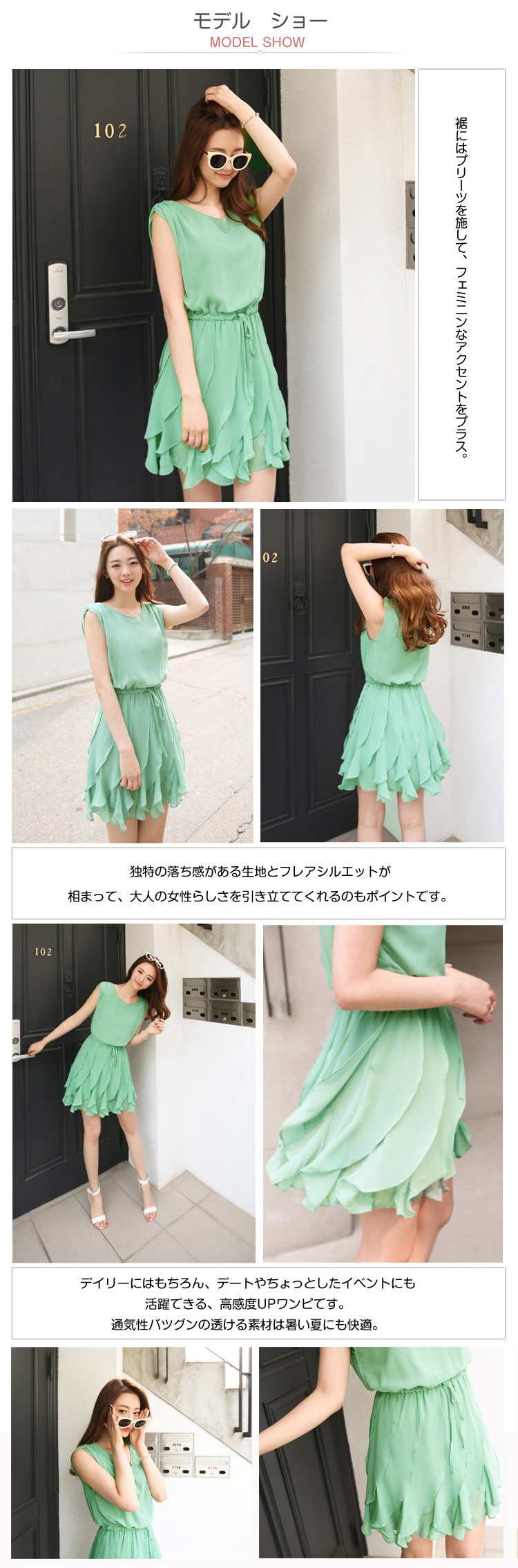 裾にはプリーツを施して、フェミニンなアクセントをプラス。独特の落ち感がある生地とフレアシルエットが相まって、大人の女性らしさを引き立ててくれるのもポイントです。デイリーにはもちろん、デートやちょっとしたイベントにも活躍できる、高感度UPワンピです。通気性バツグンの透ける素材は暑い夏にも快適。