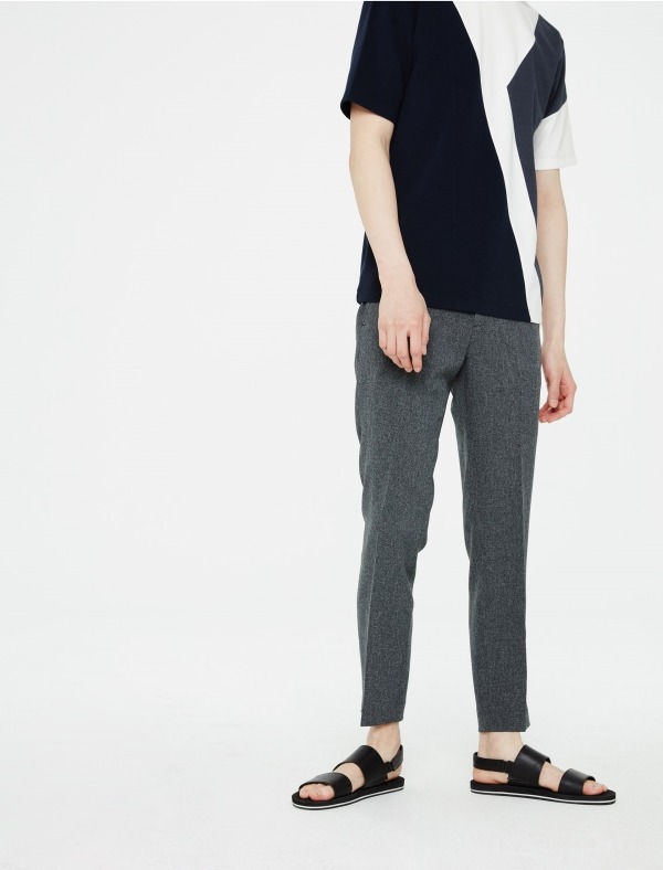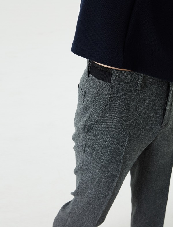 단정한 외관을 보여주는 테이퍼드 핏의 팬츠로 부드러운 텍스쳐의 혼방 소재를 적용했습니다. 양사이드 포켓과 버튼 다운백 포켓으로 구성되어 있으며, 벨트 착용시 슬림한 실루엣을 세련되게 연출하실 수 있습니다. 다양한 맨츠 아이템과 연출이 가능합니다.