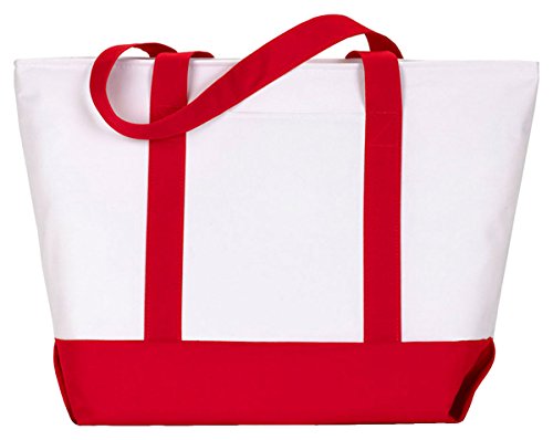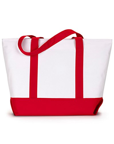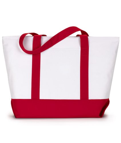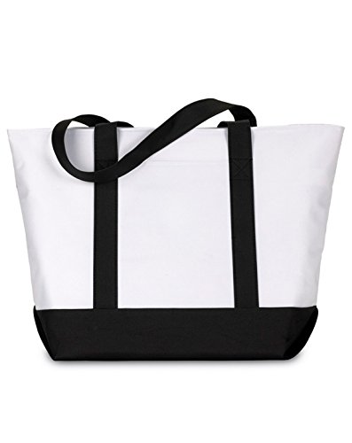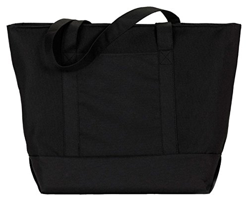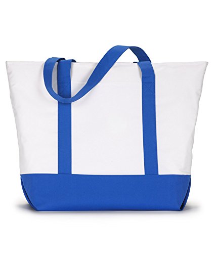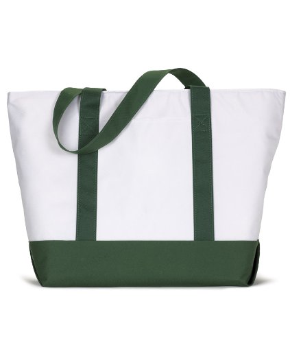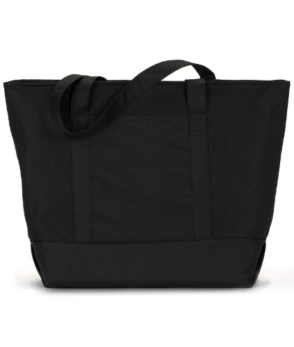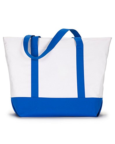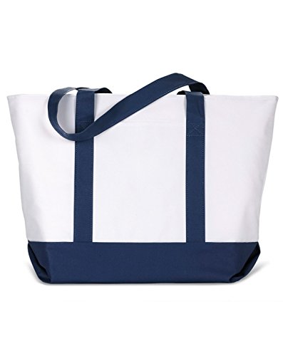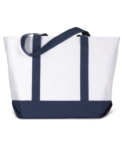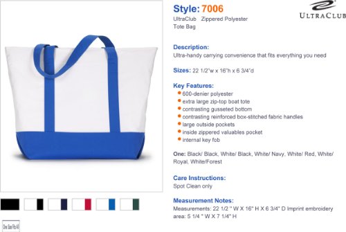 Product Description600-denier polyester. classic extra large zippered boat tote contrasting gusset bottom with matching fabric handles. large outside pockets for easy organization. inside zippered valuables pocket. internal key holding J hook. reinforced box stitch on handles.0