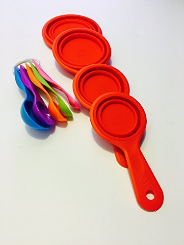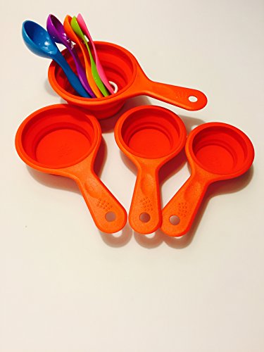 78Seven 9 PIECE Collapsible Silicone Measuring Cup and Spoon Set. High End. Assorted Colors. SUPER VALUE!