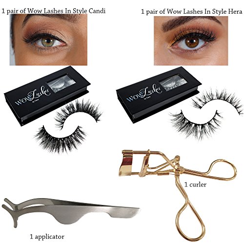 2 Pairs Long Wispy Lashes Thick Dramatic Real 3D False Mink Eyelashes Reusable Cruelty Free 2 Different Styles Bundle Set + Eyelash Extension Applicator...