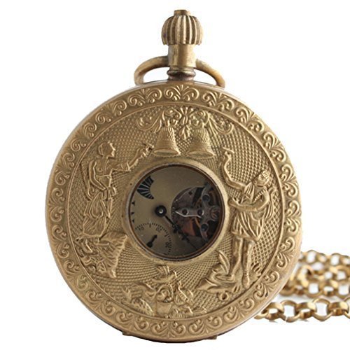 Easy time setting, just rotating, twisting the top button on the spin, tightening a walk for 24 hours Pulling out the button on the watch a little to adjust time, and no need to use battery Hand wind chain length 11 inches, pocket watch case diameter 2.1 inches Fashion gold pocket watch with new gift box Superb birthday, wedding or Christmas gifts. Best present for families, friends or teachers.