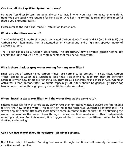 With the Activated Carbon filter of R2, this system provides cleaner, clearer, better tasting drinking and cooking water. Ideal for improving any water supply that has a noticeable chlorine taste and odour.