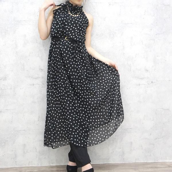 | 水玉柄 アメリカンスリーブ ロングワンピース マキシワンピース 黒 ブラック ドット柄 【ワンピース ロング丈 マキシワンピース ロング レディース 女性 ロンデルブラック ノースリーブ ワンピース 袖なし 肩だし one-piece 】 | |