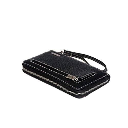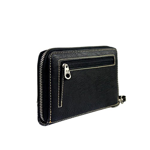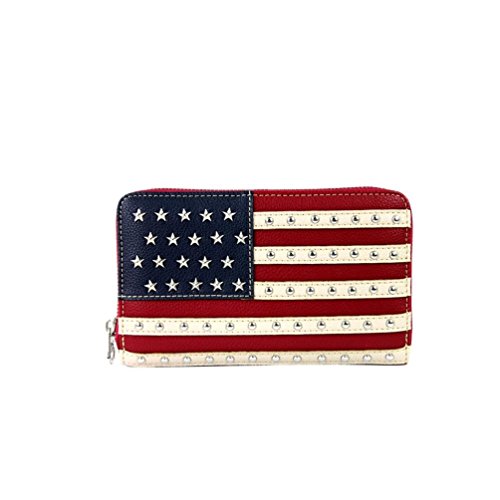 Binding : Apparel Product Description Made of PU leather, this wallet has: American flag design on the front Silver stars and crystal studs A zipper enclosure for the entire wallet Single compartment divided by a medium zippered pocket Single removable strap to convert the wallet into a wristlet Pockets on the inside for ID, credit cards, cash, and more Measures: 7.5" x 0.5" x 4.5" 0
