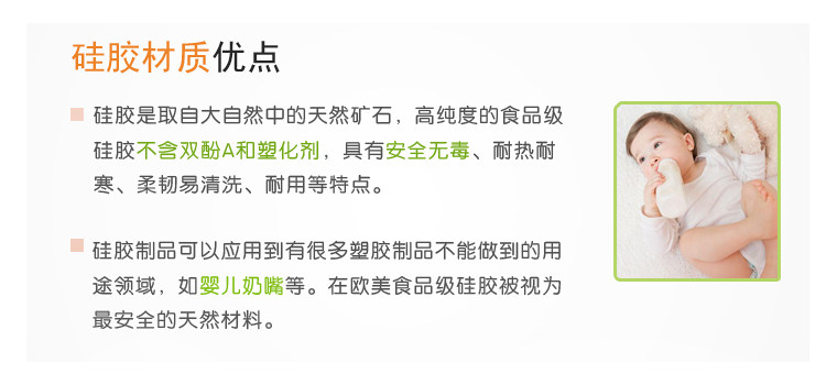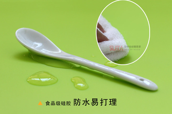 食品级硅胶材质非常好清洗和打理,因其良好的疏水性、不霉变、不掉色的特性,将之作为餐垫可以免去很多餐桌打理的烦恼。