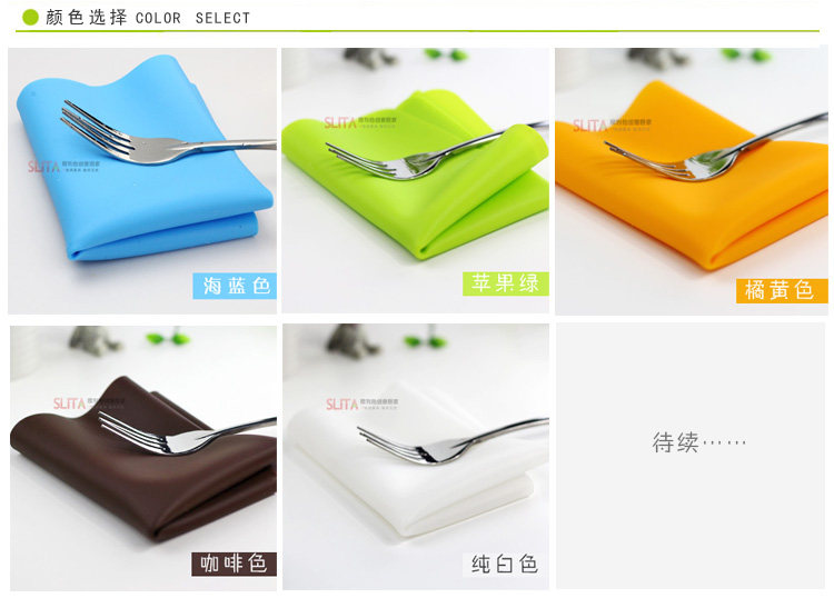 本款餐垫款式简洁,颜色清新。苹果绿和橙黄色给人亲近自然之感,十分亲切,白色则给人纯净整洁之感,咖啡色则给人低调稳重的感觉。
