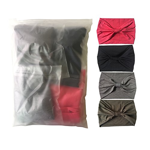 DRESHOW 4 Pack Headbands Vintage Elastic Printed Head Wrap Stretchy Moisture Solid Color Criss Hairband For Women